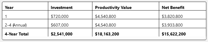 - Financial Impact: For a 1,000-person organization, this translates to $4.54 million annually in recovered productivity value